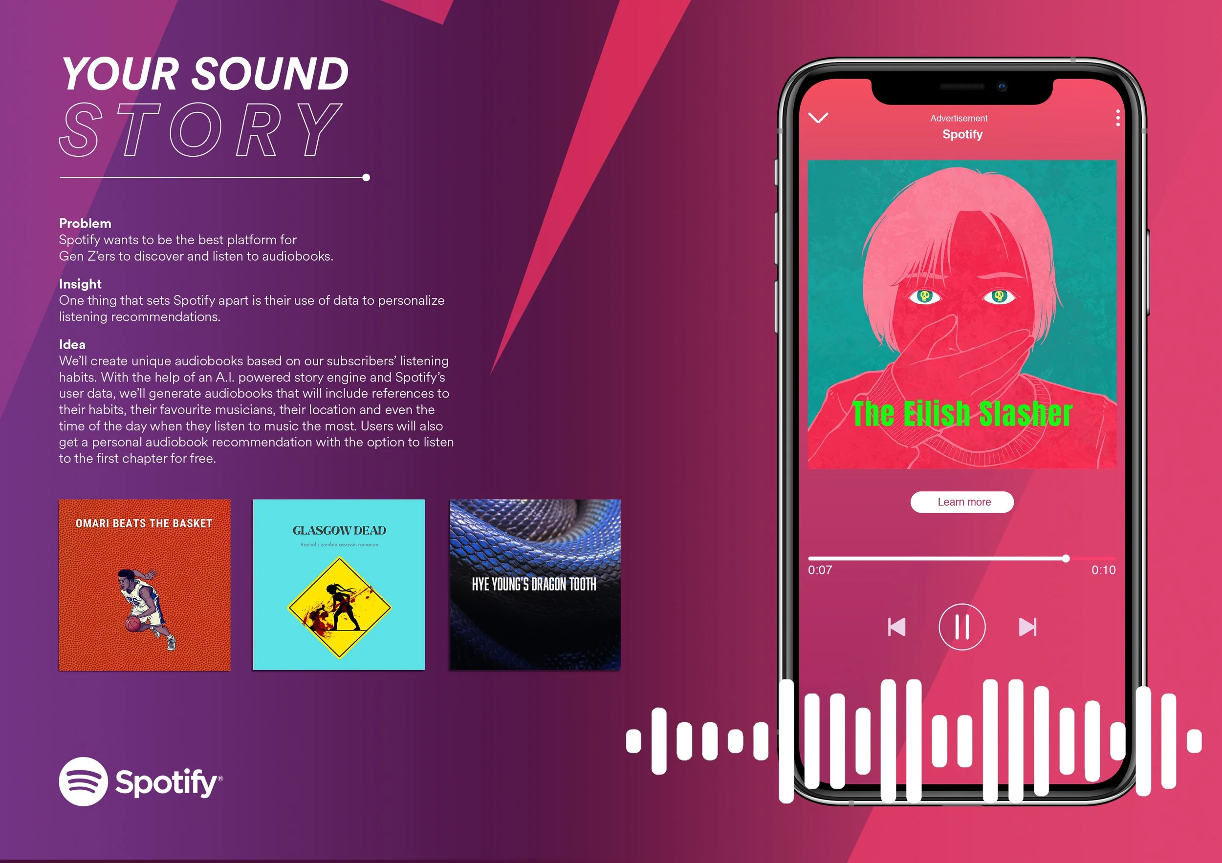 Spotify wants to be the best platform for Gen Z’ers to discover and listen to audiobooks, and they needed a campaign that will turn heads.